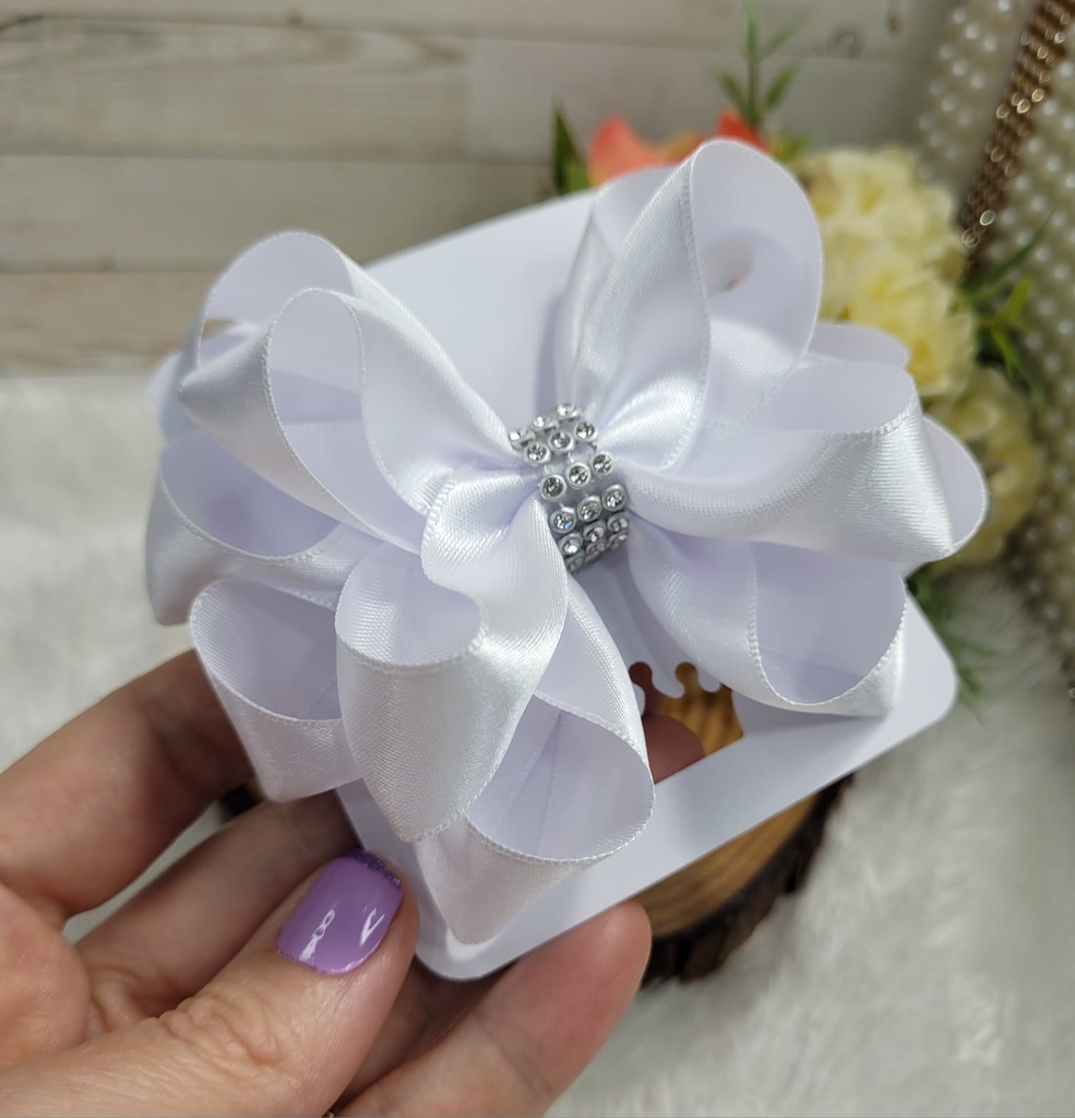 Bico de pato com pérolas e extrass branco